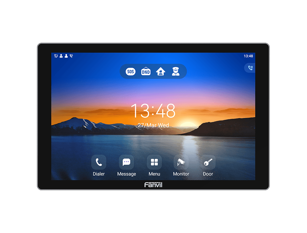 Fanvil i507W is a 10.1-inch color touchscreen indoor unit based on the Android 9.0 operating system, designed to meet the customization needs and secondary development of industry applications. It supports two-way intercom with access control, enabling one-click remote door opening. With 8 alarm inputs and an industrial power socket interface, it can connect to various sensors, ensuring real-time residential security.